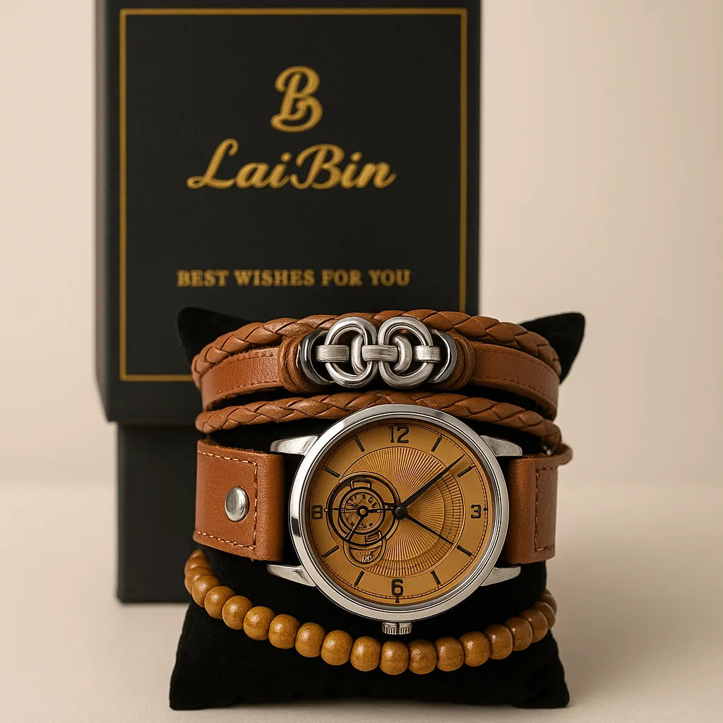 Este Día del Padre, sorpréndelo con un detalle que combina estilo y carácter. Este set de reloj y pulseras es el regalo perfecto para el hombre moderno: funcional, elegante y con ese toque urbano que nunca pasa de moda.