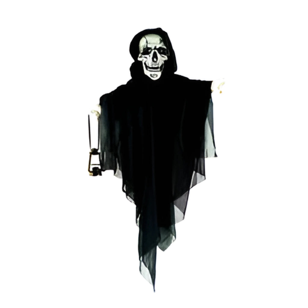 El Muñeco Muerte Colgante es una decoración clásica de Halloween que representa a la Parca o la Muerte. Elaborado en materiales ligeros como tela, plástico o espuma, con túnica negra rasgada, calavera y brazos móviles o colgantes.